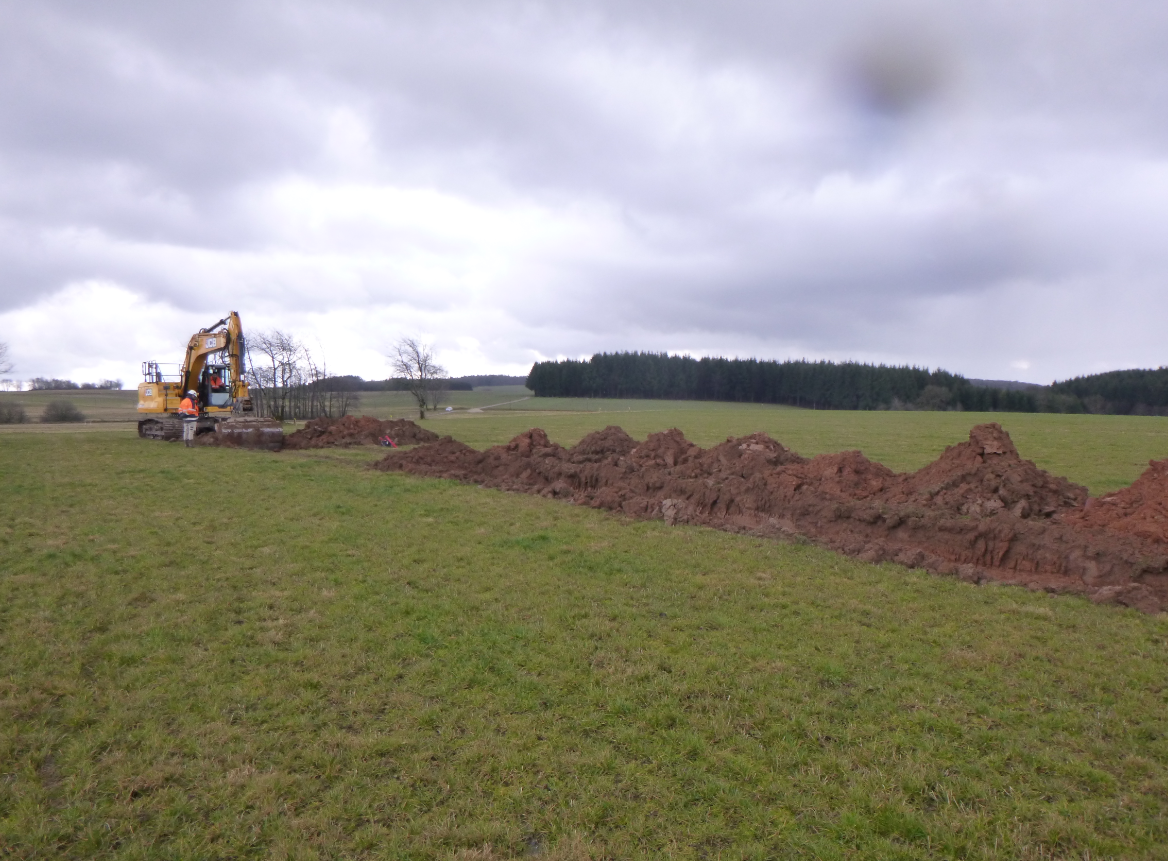 Le futur chantier éolien des Lunaires est en bonne voie ! Le diagnostic archéologique vient de s'achever après 2 semaines de fouilles. Le rapport de l'INRAP sera prochainement communiqué.